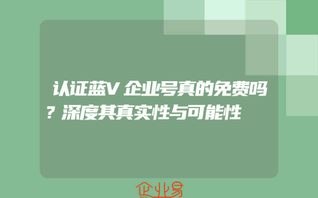 - 认证蓝V企业号真的免费吗?深度其真实性与可能性