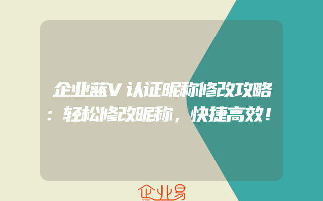 - 企业蓝V认证昵称修改攻略:轻松修改昵称,快捷高效!