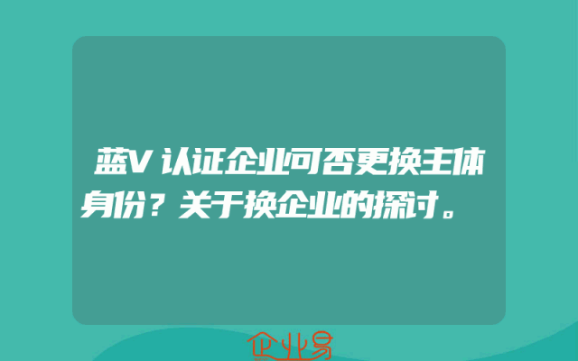 - 蓝V认证企业可否更换主体身份?关于换企业的探讨。