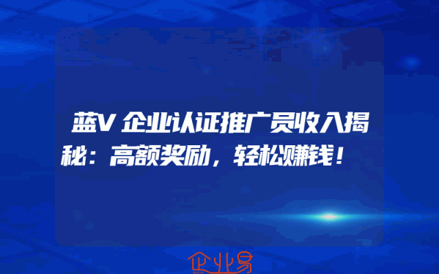 - 蓝V企业认证推广员收入揭秘:高额奖励,轻松赚钱!