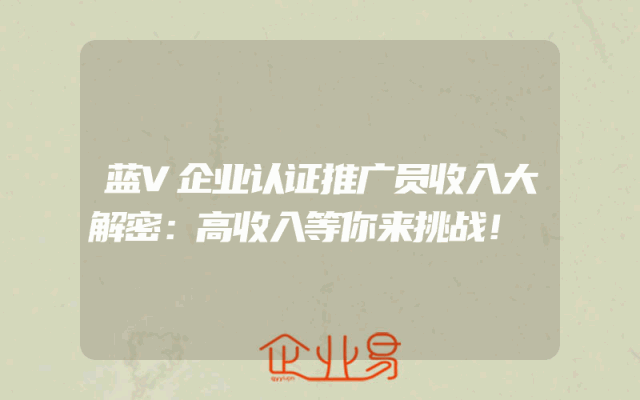- 蓝V企业认证推广员收入大解密:高收入等你来挑战!