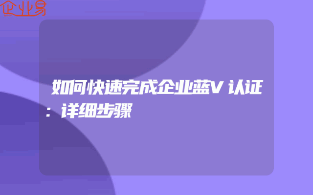 - 如何快速完成企业蓝V认证:详细步骤解析一、了解蓝V认证基本概念在企业服务领域,蓝V认证已经成为一个不可忽视的部分。蓝V认证是一种企业身份认证,旨在确认企业的真实身份和经营资质,从而提高企业在网络上的信誉度和知名度。通过蓝V认证的企业,可以在