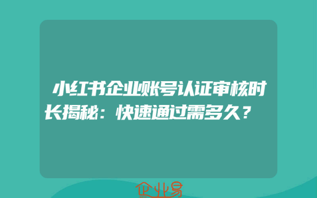 - 小红书企业账号认证审核时长揭秘:快速通过需多久?