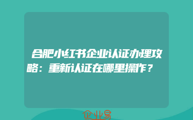 - 合肥小红书企业认证办理攻略:重新认证在哪里操作?