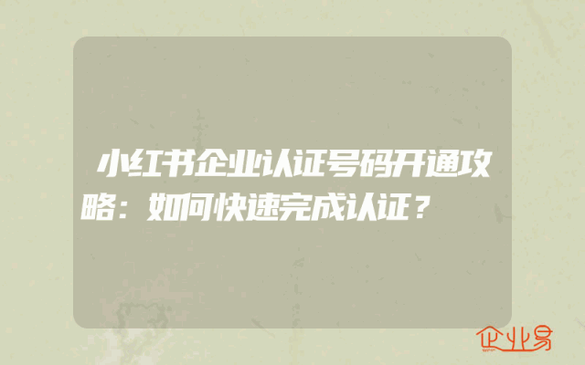 - 小红书企业认证号码开通攻略:如何快速完成认证?