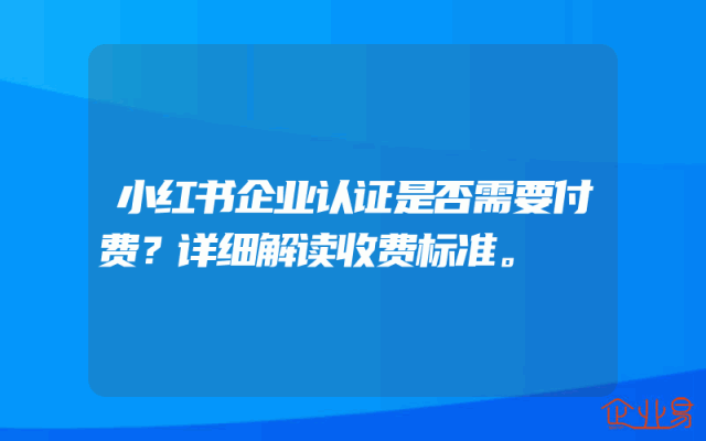 - 小红书企业认证是否需要付费?详细解读收费标准。