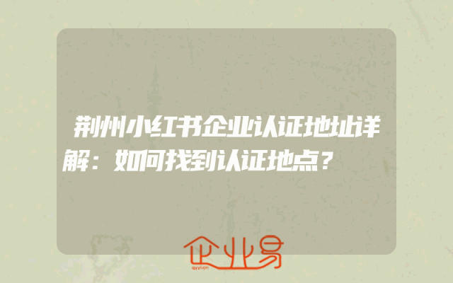 - 荆州小红书企业认证地址详解:如何找到认证地点?