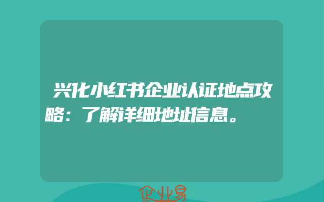 - 兴化小红书企业认证地点攻略:了解详细地址信息。