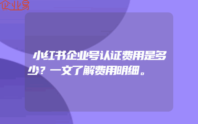 - 小红书企业号认证费用是多少?一文了解费用明细。