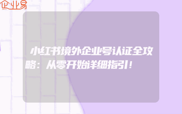- 小红书境外企业号认证全攻略:从零开始详细指引!