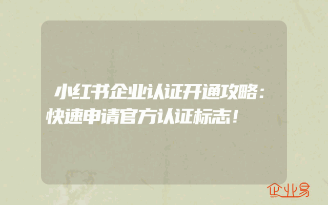 - 小红书企业认证开通攻略:快速申请官方认证标志!