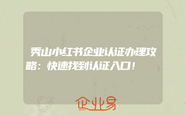 - 秀山小红书企业认证办理攻略:快速找到认证入口!