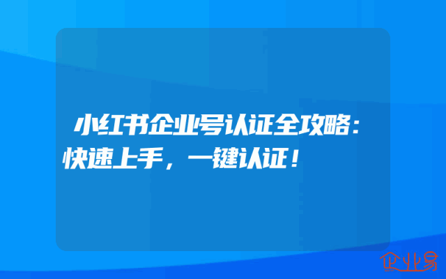 - 小红书企业号认证全攻略:快速上手,一键认证!