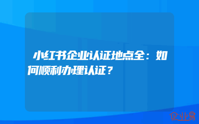 - 小红书企业认证地点全解析:如何顺利办理认证?一、小红书企业认证的重要性在如今数字化时代,社交媒体平台已经成为企业推广和品牌建设的重要阵地。小红书作为一个以内容分享为主要形式的社交平台,拥有庞大的用户群体和高度活跃的用户社区。进行企业认证,不