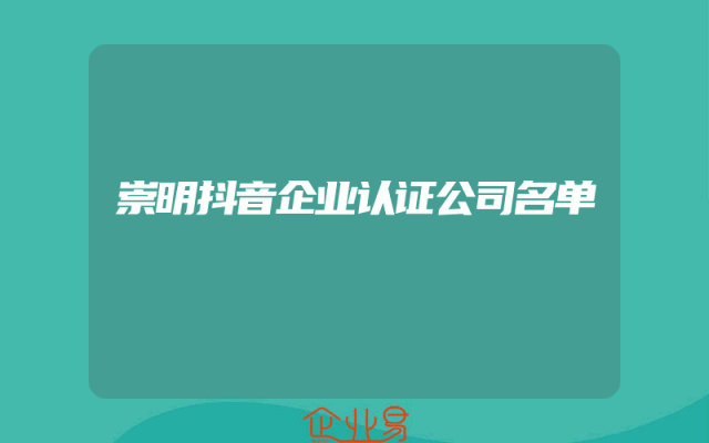 - 崇明抖音企业认证公司名单