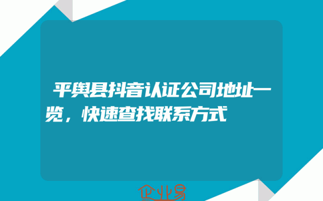 - 平舆县抖音认证公司地址一览,快速查找联系方式