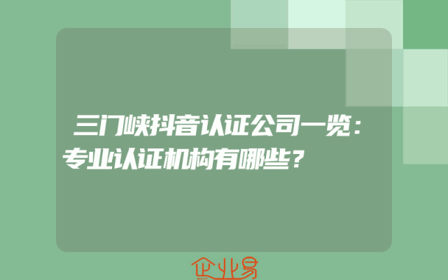 - 三门峡抖音认证公司一览:专业认证机构有哪些?
