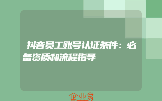 - 抖音员工账号认证条件解析:必备资质和流程指导一、抖音员工账号认证的重要性随着抖音平台的迅速发展,越来越多的企业开始重视在抖音上进行品牌推广和营销。作为抖音平台上的企业员工,拥有一个经过认证的账号,不仅能够提升个人权威性和可信度,还能为企业带