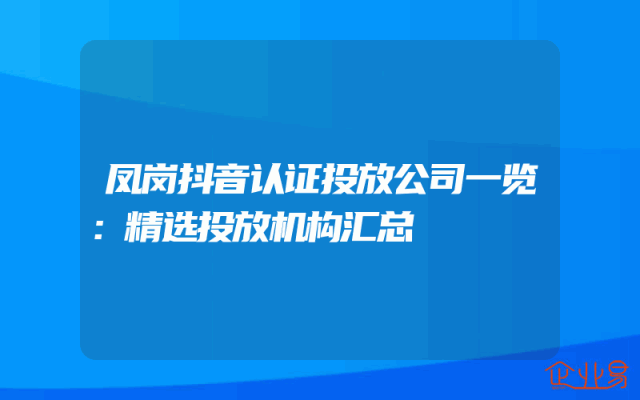 - 凤岗抖音认证投放公司一览:精选投放机构汇总
