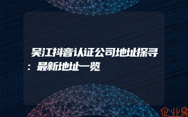 - 吴江抖音认证公司地址探寻:最新地址一览