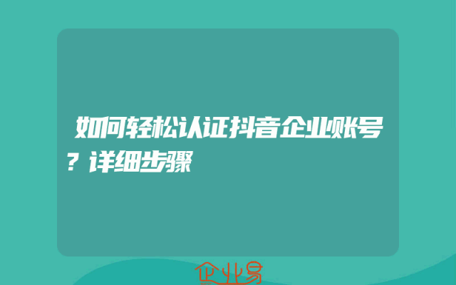 - 如何轻松认证抖音企业账号?详细步骤