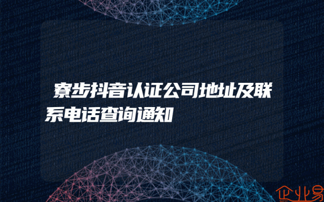 - 寮步抖音认证公司地址及联系电话查询通知