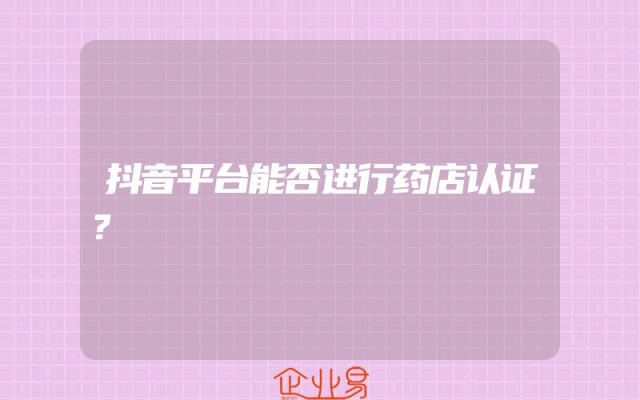 - 抖音平台能否进行药店认证?一、抖音平台与药店认证的背景随着互联网的不断发展,社交媒体平台如抖音等已经成为人们日常生活中不可或缺的部分。药店作为提供药品零售服务的实体企业,也面临着数字化转型的挑战与机遇。那么,在这样的背景下,抖音平台是否可以