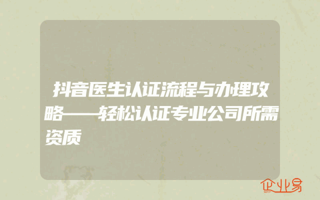 - 抖音医生认证流程与办理攻略——轻松认证专业公司所需资质