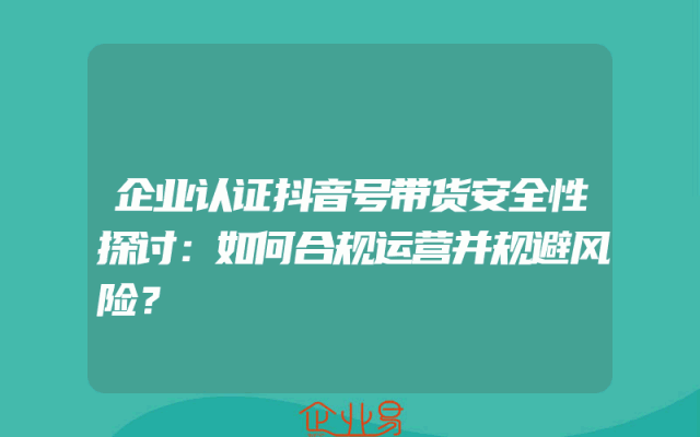 - 企业认证抖音号带货安全性探讨:如何合规运营并规避风险?