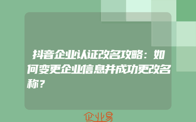 - 抖音企业认证改名攻略:如何变更企业信息并成功更改名称?