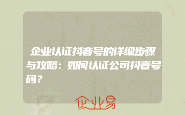 - 企业认证抖音号的详细步骤与攻略:如何认证公司抖音号码?
