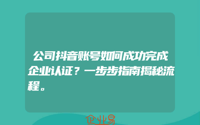 - 公司抖音账号如何成功完成企业认证?一步步指南揭秘流程。