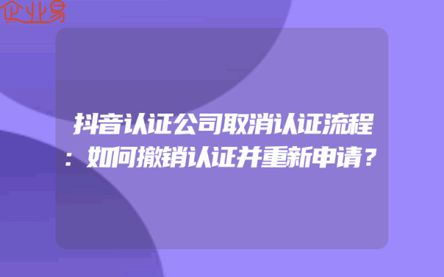 - 抖音认证公司取消认证流程:如何撤销认证并重新申请?