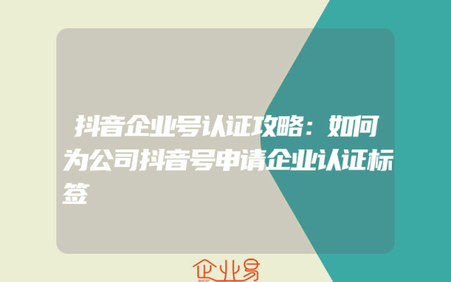 - 抖音企业号认证攻略:如何为公司抖音号申请企业认证标签