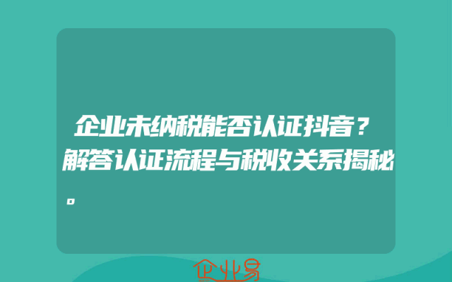 - 企业未纳税能否认证抖音?解答认证流程与税收关系揭秘。