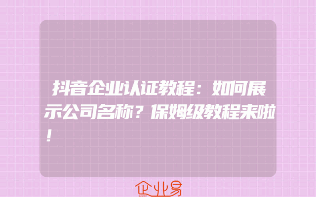 - 抖音企业认证教程:如何展示公司名称?保姆级教程来啦!
