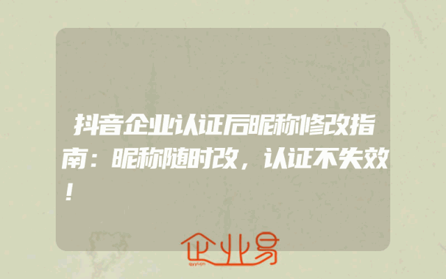 - 抖音企业认证后昵称修改指南:昵称随时改,认证不失效!