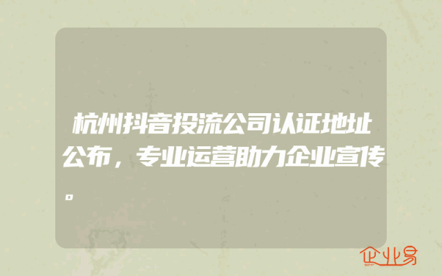 - 杭州抖音投流公司认证地址公布,专业运营助力企业宣传。