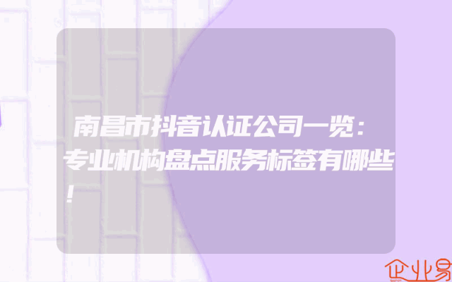 - 南昌市抖音认证公司一览:专业机构盘点服务标签有哪些!