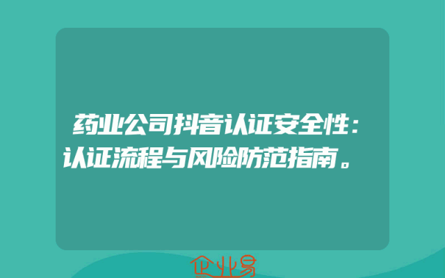 - 药业公司抖音认证安全性:认证流程与风险防范指南。