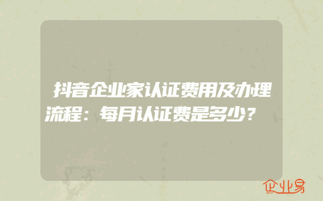 - 抖音企业家认证费用及办理流程:每月认证费是多少?