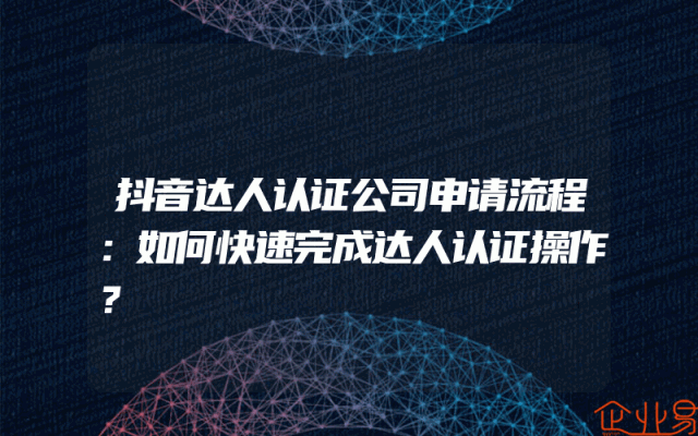 - 抖音达人认证公司申请流程:如何快速完成达人认证操作?