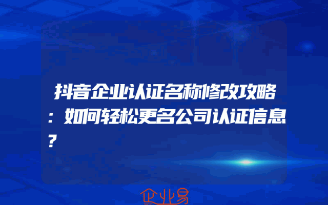 - 抖音企业认证名称修改攻略:如何轻松更名公司认证信息?一、了解抖音企业认证名称修改政策在抖音上进行企业认证后,随着公司的发展或品牌策略的调整,可能需要更改认证信息中的公司名称。首先,需要明确抖音对于企业认证名称修改是有一定规定的。了解相关规定
