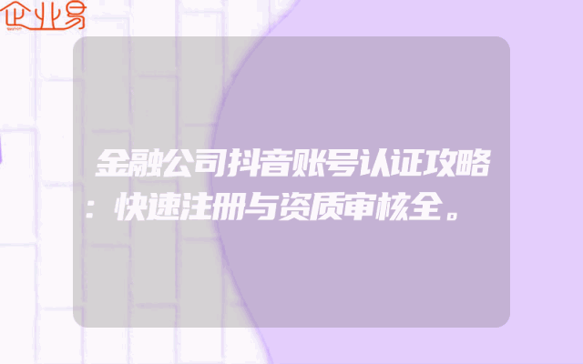 - 金融公司抖音账号认证攻略:快速注册与资质审核全。