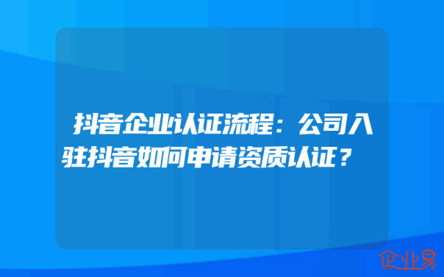- 抖音企业认证流程:公司入驻抖音如何申请资质认证?