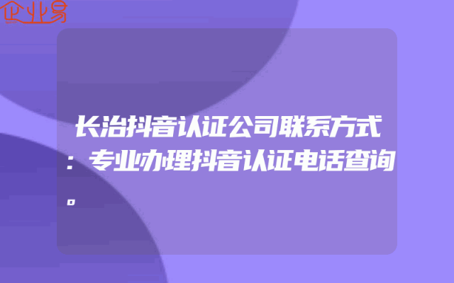 - 长治抖音认证公司联系方式:专业办理抖音认证电话查询。