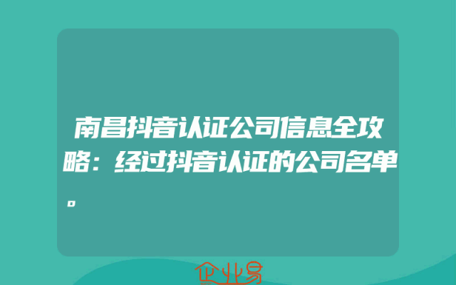 - 南昌抖音认证公司信息全攻略:经过抖音认证的公司名单。