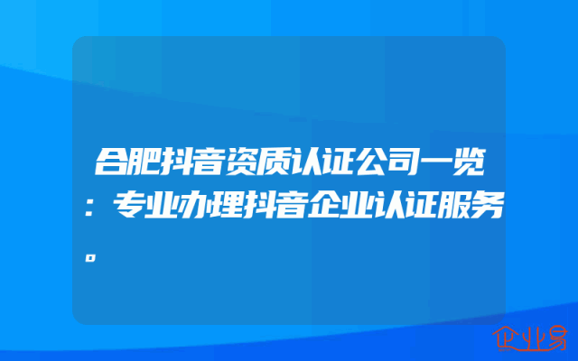 - 合肥抖音资质认证公司一览:专业办理抖音企业认证服务。