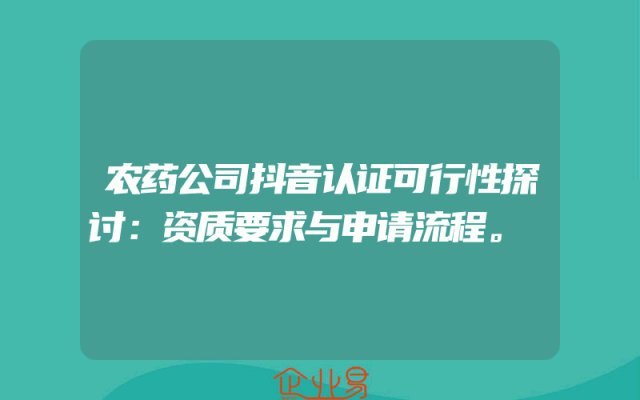 - 农药公司抖音认证可行性探讨:资质要求与申请流程。