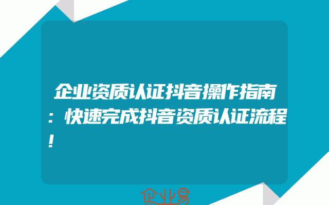 - 企业资质认证抖音操作指南:快速完成抖音资质认证流程!